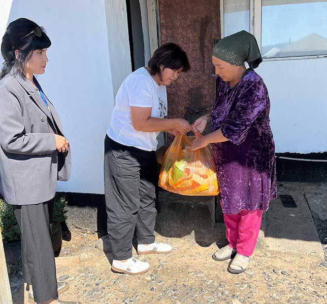 Акция барысында орталық қызметкерлері әлеуметтік жағдайы төмен және көпбалалы отбасылардың үйлеріне арнайы барып, 3 отбасыға азық-түлік себетін табыстады.